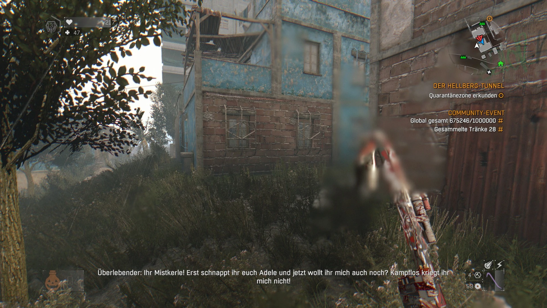 Der Dialog von ihrem Freund, welcher sich vor Zombies versteckt