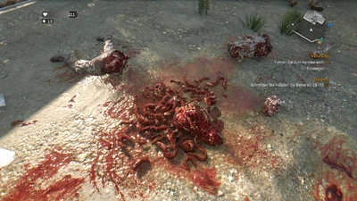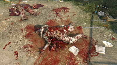 - Wenn man sich manche Leichen genauer anschaut, kann man das Schicksal der Zombies bzw. Menschen sehen, wie sie gestorben sind. Zum Beispiel liegt ein Kopf einer Leiche am Fuße eines Mastes und der Körper dazu liegt auf einer Plattform auf dem Mast.