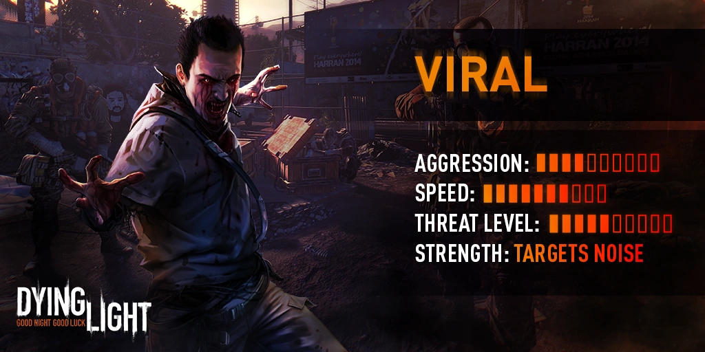 Los Víricos son infectados muy rápidos y fuertes, que conservan gran parte de su agilidad como humanos. Pueden correr tan rápido como Crane, no se cansan y son capaces de escalar grandes alturas. Normalmente perseguirán al jugador hasta la muerte, pero si este permanece fuera de su alcance, se aburrirán y se marcharán. Si lo pierden de vista, recorrerán toda la zona en su búsqueda siguiendo el rastro del personaje. Sus ataques no consisten en mordiscos, sino en furiosos golpes sucesivos que pueden drenar rápidamente la salud. Sin embargo, no son tan resistentes como los coléricos, y morirán si caen desde gran altura, o si se les rompen o amputan las piernas.Los víricos son atraídos por sonidos fuertes, como la rotura de tablones de madera, petardos, explosiones o disparos de armas de fuego, y acudirán en grupos de dos a cuatro. En algunas ocasiones pueden llegar a ser grupos más grandes, pero solo unos pocos perseguirán al jugador.
