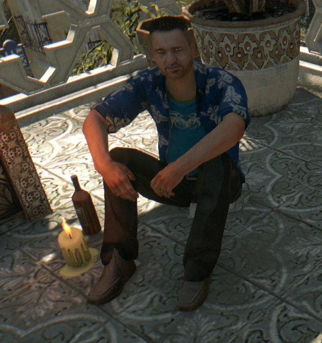 He is a German tourist who travelled to Harran for the Global Athletics Games with his friends Felix and Heinrich when the outbreak occurred. When Kyle Crane finds him, he explains that when the outbreak first occurred, his friends convinced him alcohol would make him immune to infection. As a result, he became heavily inebriated and woke up four days later to find the city under quarantine and his friends gone. Abandoned by his best friends, he swears vengeance on them to Crane.