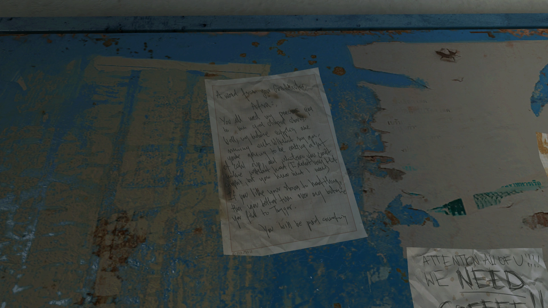 "A word from your Gas Master Afra: You all need my precious gas to run your stupid stoves. Well, my butane supplies are running out. Without my gas, you're going to be eating a lot of cold soup, and whatever else you can't make without heat (I didn't say that right, but you know what I mean). If you like your stoves to heat things, then you'd better turn over any butane you find to Toygar. You will be paid something."
