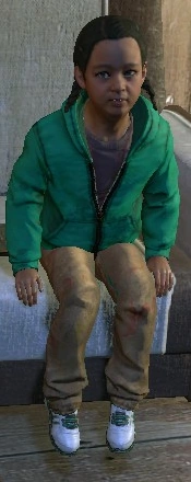 Crane:"Yasmina? I want to help your mom. Can you talk to me? Your mom's in danger. I need to find her." Yasmina:"She's gone. She was bitten. Harun says you can't be here once you've been bitten." Crane:"I'm going to get her to a place that has medicine. They won't make her leave. Now, can you tell me what happened to you and your brother?" Yasmina:"Me and Jamil went under the fence to find our mom. It took a while, but we found her at the houses behind the tunnel. Only there was a biter there. He bit me, and my mom hit him on the head." Crane:"You were bitten?" Yasmina:"Only a little. I tried to get away." Crane:"What did your mom do?" Yasmina:"She put us in a house, and then she went to look for medicine. When she came back, she told Jamil to wait there, and then she took me to the man." Crane:"Did he give you medicine?" Yasmina:"Yes... He said we would both need more, but that me and my mom could stay in his basement as his puppets. I don't know what he meant, but my mom got scared and hit him, and told me to run... So, I did." Crane:"It's alright, Yasmina. I'll find her. Where does the man live?" Yasmina:"I'm not sure. It's a house with hammers... and axes." Crane:"And where's your brother?" Yasmina:"Jamil is hiding in the house with the red flowers." Crane:"You're a brave girl, Yasmina, but I need you to stay here a little longer, ok? And keep away from Harun until I get back. Can you do that?" Yasmina:"You're really going to find my brother and mom?" Crane:"You bet I will." Yasmina:"Thank you, mister."